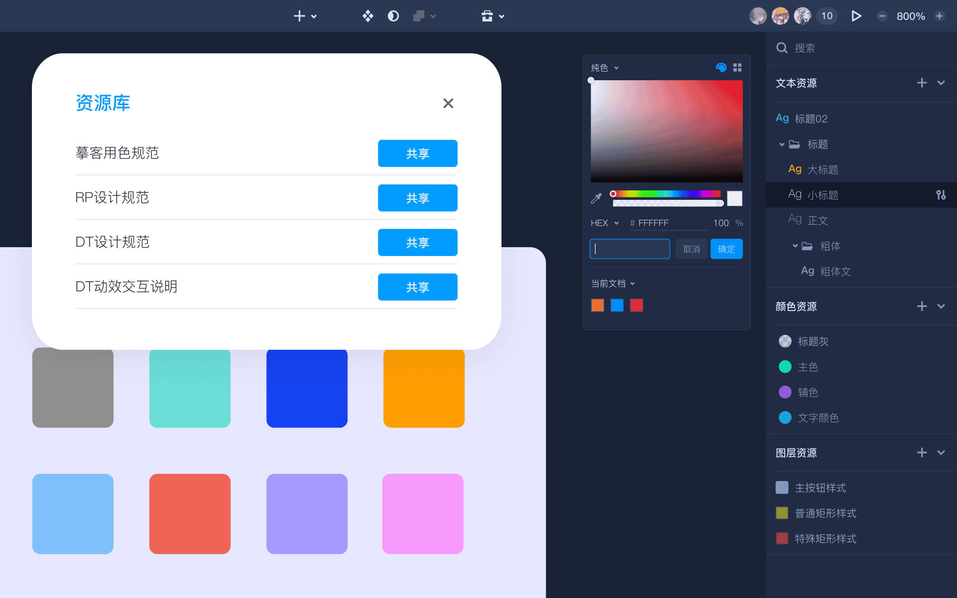 支持顏色/文本樣式/圖層樣式|資源修改全局生效|跨項目/團隊共享